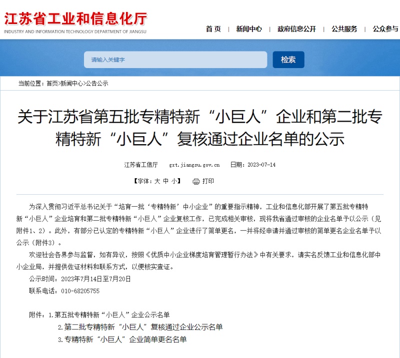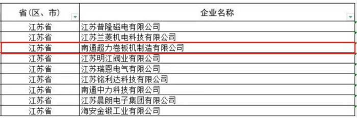 近日,江蘇省工信廳發(fā)布《關于江蘇省第五批專精特新“小巨人”企業(yè)和第二批專精特新“小巨人”復核通過企業(yè)名單的公示》。我們南通超力卷板機制造有限公司上榜第五批國家級專精特新“小巨人”企業(yè)名單。